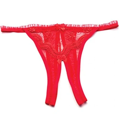 Beautiful crotch less thong panty Made of 100 percent nylon Delicate embroidery on a sheer mesh background With elastic string sides and back bands Great collection for the magic moments