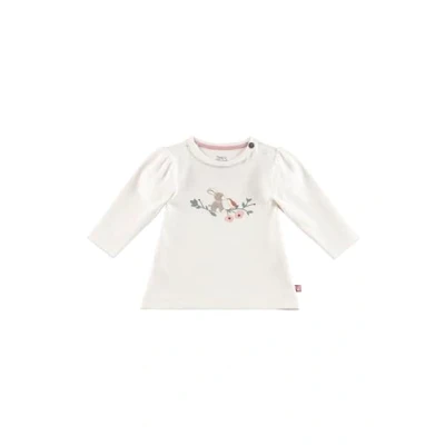 Long-sleeved shirt with puff sleeves and decorative crochet edges on the sleeve hem made of cotton jersey with elastane With print Emmi and bird on a branch in the front centre Shoulder button on the left