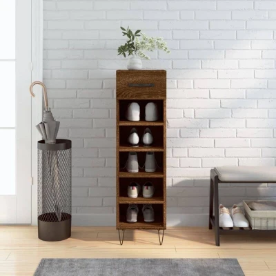 VidaXLKeep your shoes organised and create a tidy environment with this elegant shoe cabinet! Durable material: The engineered wood is of exceptional quality with smooth surface and also features strength, stability and resistance to moisture.Ample storage space: This shoe cupboard has 1 drawer and 5 open compartments, providing ample storage space for all types of shoes.Stable cabinet top: The top of this shoe stand is suitable for placing your favourite decorative items such as vases, potted plants, etc.Practical design: The iron feet add an industrial style to your interior while ensuring stability. The aluminium alloy drawer handle is stylish and durable Warning:To prevent it being overturned, this product must be used with the provided wall attachment device.