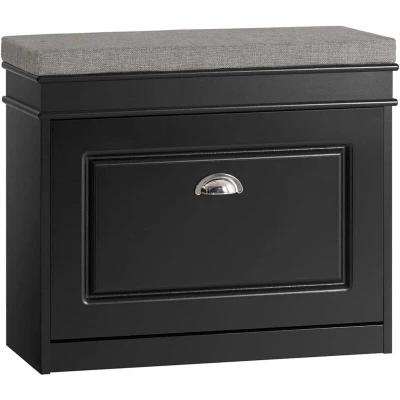 Shoe Storage Bench with Seat Cushion Narrow Cabinet Flip Drawer, 2 Tier Rack, 150kg Load Compact Hallway Unit for Small Spaces Black W61 x D24 H51cm FSR82 K SCH