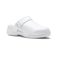 Superior slip resistant outsole. Water resistant. Metal free. Clog resistant outsole. Removable EVA insole. Energy absorbing heel construction. Pivoting strap for ankle support. Microfibre Upper. TripGuard.