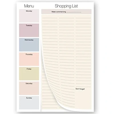 Shopping List Pad with detachable Weekly Meal Planner. 50 sheets 247 x 172mm per pad. Made in the UK by Absolutely Yours.