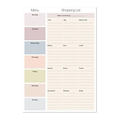 WEEKLY PLANNER PAD – Food Planner and Shopping List in one convenient pad. Easily organise your grocery food shopping with this family planner. Plan meals for the whole week and use the tear off shopping list for your supermarket visits. PLAN FOR THE WHOLE FAMILY - Create healthier habits by planning your weekly meals, then list ingredients and essentials for you weekly shop, helping you achieve a more balanced diet and cutting down on food waste. CARBON CAPTURE – We offset any CO2 emissions produced in the manufacture of our paper and board when purchasing by either planting woodlands right here in the UK or by preserving high conservation value forests. CONVENIENT - At 172 x 247mm these shopping list pads are the perfect size. Large enough to list all your meals and items, yet small enough to refer to and tick off your items while at the supermarket. QUALITY PAPER - Shopping lists are printed on uncoated 100gsm bond paper, making them ideal for writing on with almost any pen or pencil.