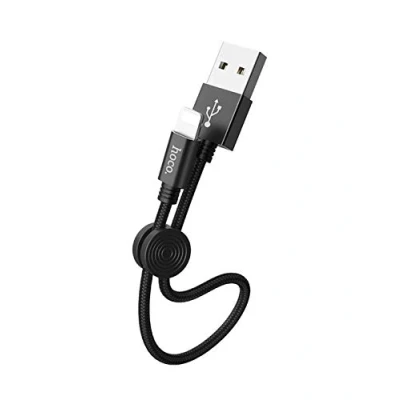 Short iPhone Charging Cable 25cm HOCO CE Certified Fast Charger Round Clip for Long Term Use, Support Data & Apple Carplay Small 14/13/12/11/Pro/Max/XS/8/7 Black