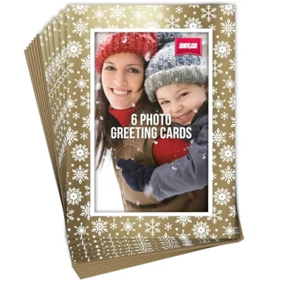 Shot2go Pack of 6 Christmas Photo Cards (Gold White Snowflake)