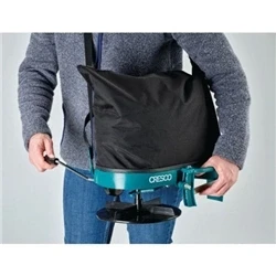 Ideal for hilly areas, wet terrain or difficult to access pathways. Adjustable strap for additional comfort. Heavy duty gearbox and bag for longer life. Capacity: 17kg salt (Large). Weight: 1.53Kg.