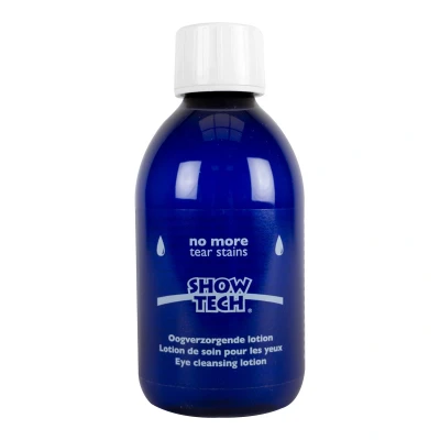 Show Tech No More Tear Stains We humans are only properly washed in the morning once we have eliminated those boogers from our eyes. But what about our beloved quadrupeds? The reddish-brown staining around the eyes is a frequent problem amongst cats and dogs. Bye bye dirty eyes Our advice: keeping the eyes dry and regular cleaning. Haven’t found the perfect product yet? Stop searching because we have developed the Show Tech No More Tear Stains for you! This eye cleanser, available in 250 ml or 1 L, is designed to remove tear stains and for complete care in and around the eyes, but also if you want to get rid of brownish stains in the beard and between your pet’s toes. No More Tear Stains helps to decongest and unblock the blocked, swollen tear ducts. Why should I use the No More Tear Stains? The first reason is obvious: these stains just look messy. But there is another important reason. If the eyes of your cat or dog aren’t thoroughly cleaned every now and then, the unsightly stains will become more stubborn and difficult to get rid of! Excessive tear production and dirty eyes are also very annoying for your furry friend. Cat and dog owners who truly love their animals, will without doubt do anything to alleviate and resolve this cosmetic but often also health related issue. It’s a fact: if all the above sounds familiar to you, this fantastic eye cleanser is an essential part of your pet care kit! Why does my pet have tear stains? The reddish stains are actually caused by epiphora or put in more simple language: watery eyes and excessive tear production. Everything starts with a clogged tear duct, the canal that runs from the eye to the nose. Tears have a low pH, which means they are lightly acidic. If the tears stay on the coat all the time, the hairs around the eyes will die and turn brown. Thanks to the oxidation-inhibiting effect of the No More Tear Stains, the coat will retain its natural colour. Tear stains can be related to many different issues: A (food) allergy or an improper diet. Often, once a dog with a food allergy has his diet changed to grain free food, the staining problem is resolved. Teething or an ear infection. Genetic issues such as ingrowing eyelashes, inverted eyelids, shallow eye sockets or a short nose. The production of tears can result from eye irritation or eyes being unable to drains the tears because the drain holes near the eyes are too small. We always advise you consult your veterinarian to see if there is no underlying health issue that needs to be treated. It’s all in the details Tear stain remover Best-selling product! Eye care product for dogs and cats Available in 250 ml and 1 L Use instructions Recommended for all dog breeds, especially those with a short face such as Maltese, Pekinese, bichons frises, shih tzus, Yorkshire terriers and even Persian and exotic shorthair cats. We recommend using No More Tear Stains at least one time a day. In severe cases, you can even use it twice. Just drip the product in and around the eye. Clean and dry with a cotton cloth or pad, or use an eye wipe. Keeping the hair around the eye dry is the main secret to not having any brown stains. In most cases it’s all about keeping the eyes as dry as possible and cleaning the eyes every day. With daily use in and around the eyes, this lotion helps to free the blocked canals and ensures that the tears remain translucent. Does your pet suffer from a lot of stains? Then it is advisable to use the Show Tech+ Stain Away clay powder in addition to the No More Tear Stains. This great product will help you keep the hair around the eyes as dry as possible. Do you want to eliminate the tear stains from the inside out? Then we also recommend using Show Tech Vitalize , a 100% natural dietary supplement, in addition.
