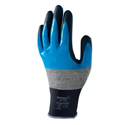 Showa Nitrile Coated Grip Gloves, Grey/Blue/Black, Size 6