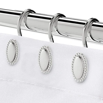 Shower Curtain Hooks, Decorative Rings, Rust Resistant Metal Hooks for Bathroom, Glide Rings and Liner, Set of 12, Chrome