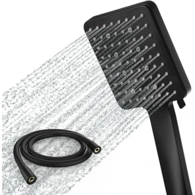 🚿PREMIUM QUALITY HIGH PRESSURE SHOWER HEAD AND HOSE: The square handheld shower heads with hose 1.5m are adopted by the scratch-resistant ABS pearlescent panel and glossy chrome-plated surface, making large shower heads lightweight and durable. Truly provide you and your family with a comfort and long-lasting bathroom showers. 🚿MULTIFUNCTIONAL BLACK SHOWER HEAD AND HOSE SET: 6 spray settings are available for this rainfall shower head increase pressure with single hand easily, suitable for hair washing, gentle shower, massage, child or pet bath, and bathroom cleaning etc. Freely customize your showering and enjoy desired spray performance with water saving shower head. 🚿SINGLE-HAND ADJUSTABLE SHOWER HEADS: Innovative button design of the massage shower head jet looks luxury with a neat little flick switch to change the shower flower, providing you, your child and your pets a pressure-relief and pleasure bath. 🚿EASY CLEANING BIG SHOWE HEADS: Universal shower head are equipped with self-cleaning silicone nozzles, Simply wipe it with a towel or sponge for one step saving your time and effort. 🚿ONE-STEP INSTALLATION SHOWER HEADS ONLY: Newentor power shower head for the bathroom pressure boosting fit universally for most standard shower hose with global 1/2 interface and most high pressure shower heads holders, connected manually in minutes without any tool. Square outline of the powerful flow shower heads let you enjoy a convenient and invigorated showering. 1 years guarantee for added peace of mind., Manufacturer: Newentor