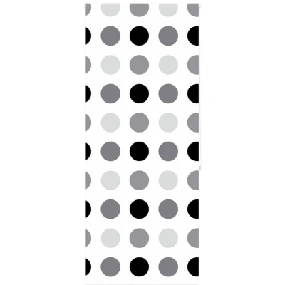 ManoManoGeneral description Elevate your bathroom's style and functionality with this shower roller blind, offering privacy, tidiness, and elegance. Made from water-resistant PEVA material, it is easy to clean and ensures long-term use while providing complete privacy during showers. Technical specifications Material: PEVA (Polyethylene-vinyl acetate) Top rail material: Aluminium Total height: 240 cm Total width: 110 cm Fabric width: 106 cm (tolerance ±4mm) Window frame thickness range: 1.5-2.5 cm Pattern: Circle Assembly required: Yes SKU: 4014837 Compatibility and accessories Multiple assembly options: Can be mounted to the ceiling or wall using screws, or attached directly to the window with clamping brackets. Mounting accessories included. Chain connector for height adjustment. Installation The shower roller blind can be installed using screws or clamping brackets, allowing flexibility based on your needs. Usage To ensure complete coverage, measure your window glass and add 4 cm to the