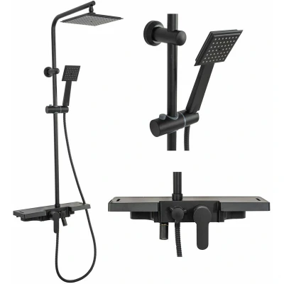 General description A shower set designed with comfort and functionality in mind. Thanks to a special production phase, the set guarantees maximum safety and comfort in everyday use. Unique design and high quality of materials used guarantee durability and reliability for many years. Technical specifications Material: Brass/ABS Assembly and installation: wall, surface Height: 105 cm Rain shower size: 21x21 cm Hose length: 150 cm Nozzle system: Anti-Calc Shower connection: 1/2 inch Warranty: 2 years Manufacturer: Rea