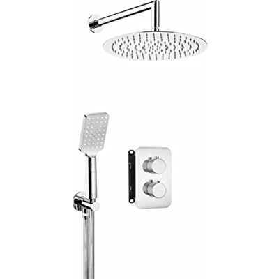 Type of the tap: flush-mounted BOX, thermostatic. Mounting method: flush-mounted. Flow class [l/min]: S - 15.1 - 19.8 l/min. Acoustic group [dB]: I (x ≤ 20). Type of spout: fixed. Range of the shower/bath spout: 325 mm. Shower head shape: round. Shower head material: 304 steel, brass. Shower head diameter: 300 mm. Shower head thickness: 55 mm. Anti-calc shower head: yes. Number of shower head functions: 1. Shower head stream types: rain. Fast reaction time to turning on and off the water: yes. The number of functions of the handset: 3. Anti-calc handset: yes. Types of handset stream: rainy, water mist, mixed. Hose length: 1500 mm. Type of braid: not applicable. Braid material: PVC. Anti twist: 1. Finish: chrome. Type of angle connection: for a hose with a hand shower holder. Angle connection shape: square. Angle connection material: brass. Angle connection thread: yes. Flush mounting: yes., Weight: 13.22773572 pounds, Manufacturer: Deante