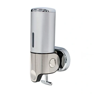 Shower Soap Dispensers Pump Action, Lockable, Wall Mounted, Silver (Single)