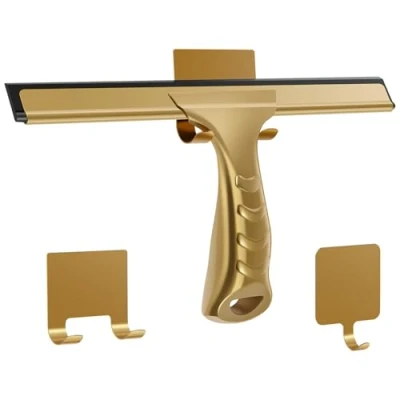 Shower Squeegee,Window Squeegee,Stainless Steel Screen Wiper,Multi Purpose Squeegee with Square Hook for Bathroom,Kitchen,Mirror,Car,Window and Glass Cleaning (Gold)