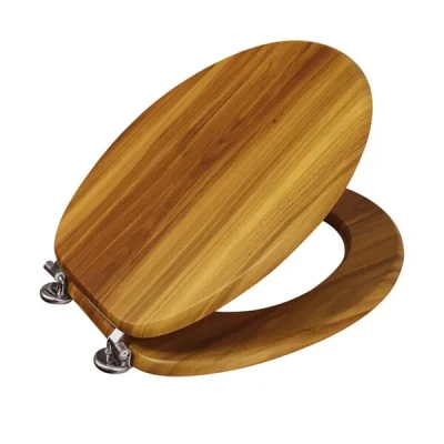 Showerdrape Antique Pine Wood Toilet Seat, Seat with Adjustable Chrome Hinges, Standard Wooden PVC Veneers, The Effect Loo Includes Fixtures and Fittings.