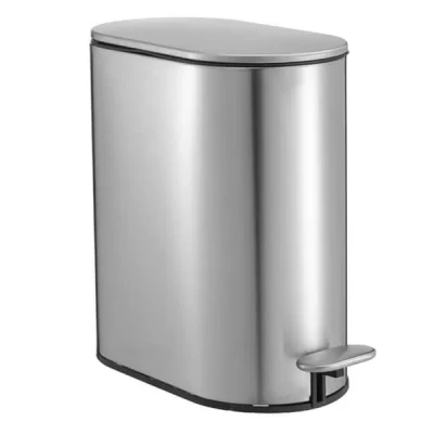 Small Oval Rubbish Bin: Modern-style, 5 litre fingerprint-proof and smudge-resistant Stainless steel dustbin with manual foot lever Lid Design: Soft-close lid of refuse bin reduces noise when closing while minimising wear and tear from rough use With Heavy-Duty Bucket: Sturdy plastic interior bucket of black bin is removable and easy to wipe clean; for convenient waste disposal Multi-Purpose: Trash bin ideal for kitchen waste or paper; for use in bedroom, bathroom, kitchen, workspace or office Dimensions: Compact bin measures 28cm x 25.5cm x 14cm; item weight: 1.23kg