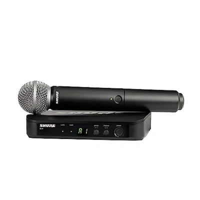 Shure BLX24/SM58 UHF Wireless Microphone System Perfect for Church, Karaoke 14 Hour Battery Life, 100m Range Includes SM58 Handheld Vocal Microphone, Single Channel Receiver K3E Band