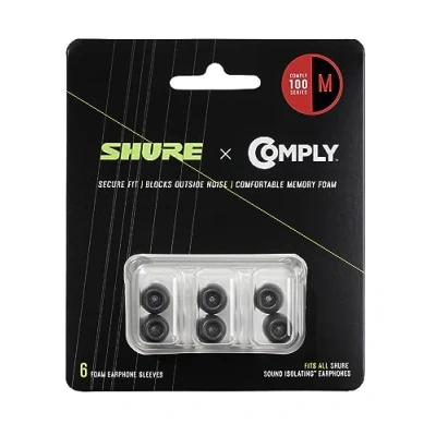 Shure Comply Foam Sleeves 100 Series Replacement Memory Tips for Sound Isolating Earphones 6 Pack (3 Pairs), Medium (EACYF1 6M)