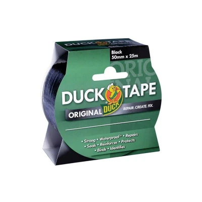 General description This Duck Tape® Original is a versatile adhesive tape that is perfect for a variety of tasks including fixing, binding, repairing, protecting, identifying, and reinforcing. It is designed for both indoor and outdoor use, making it ideal for applications around the home, garage, and garden. Technical specifications Colour: Black Width: 50mm (2in) Length: 25m Usage This Duck Tape® is strong and waterproof, making it suitable for a wide range of applications. It tears easily, eliminating the need for scissors, and adheres firmly to most surfaces. However, it is not suitable for total immersion in water.