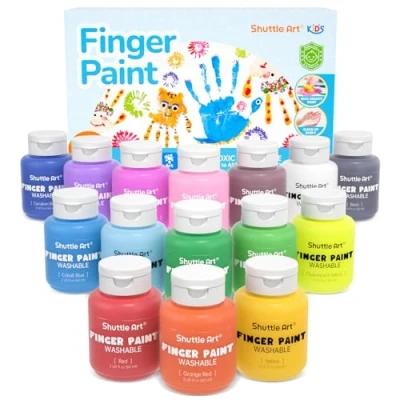 🎨 15 COLOURS FINGER PAINT SET: Shuttle Art kids painting set contains 15 colours washable finger paints in bottles (60ml each), offering rich colour options, ideal toddler arts and crafts for family and school projects. 🎨 WASHABLE & CHILD-SAFE: Made from a water-based formula, our paint easily washes off skin, clothes, desks, glass, and fabrics. It is mess-free, non-toxic, and acid-free, ensuring safety for kids during creative play. 🎨 CREATIVE & EDUCATIONAL FUN: Painting with fingers allows children to blend colours and create amazing art with ease, helping develop their sensory perception. A great choice for parent-child activities, early learning, and educational play. 🎨 MULTI-PURPOSE: The rich, creamy paint with bright colours works perfectly for kids finger painting, sponge art, and poster projects. It can also be used on various surfaces such as paper, glass, wood, plastic, and ceramic. ✅SERVICE GUARANTEE: Your satisfaction is our top priority, please rest assured to purchase our products. If you have any questions or are not fully satisfied, please feel free to contact us at any time., Manufacturer: Shuttle Art