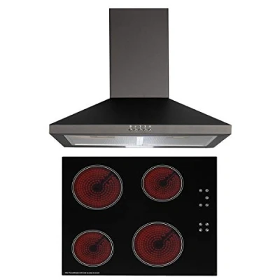 SIA 60cm Black 4 Zone Touch Control Ceramic Hob And Pyramid Chimney Cooker Hood
