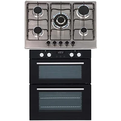 SIA 60cm Black Built Under Double Oven And 70cm 5 Burner Stainless Steel Gas Hob