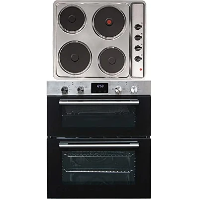 SIA 60cm DO111SS Stainless Steel Electric Double True Fan Oven & PHP601SS Solid Plate 4 Zone Easy clean Hob