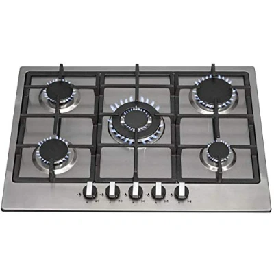 SIA R6 70cm Stainless Steel 5 Burner Gas Hob With Iron Pan Stands & Wok