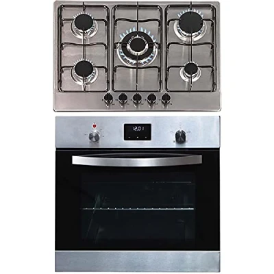 SIA SO114SS 60cm Stainless Steel Digital Electric Single Fan Oven & SSG702SS 70cm 5 Burner Gas Hob With LPG Kit FFD