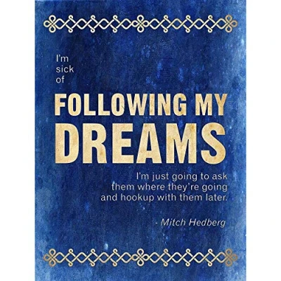 Sick Following My Dreams Hookup Later Mitch Hedberg Quote Blue Art Print Poster Wall Decor 12X16 Inch
