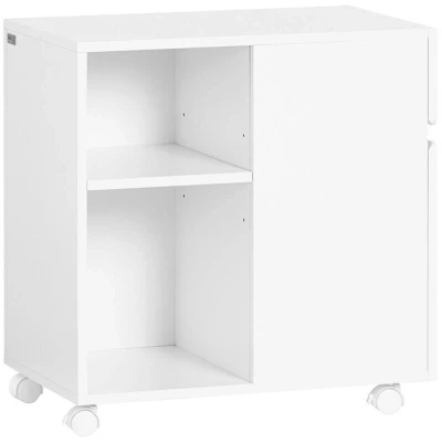 General description Modern design multipurpose storage cabinet provides plenty of storage space, suitable for study room, living room, office, etc. The top of the cabinet is ideal for storing your printer or items you need within reach. The drawer on the top is suitable for small items such as stationery, keys, or accessories. Two open storage compartments and a door provide ample space for documents, files, books, etc. Can also be used as a sideboard in the living room and kitchen. Mounted on 4 sturdy wheels (2 with brakes) for easy mobility and flexibility. Modern and elegant design blends perfectly with any style of decor. Technical specifications Material: MDF Dimensions: W58 x D35 x H59 cm Weight: 16.9 kg Load capacity: 36 kg Installation Item comes in a flat pack and requires self-assembly. Detailed instructions are supplied.