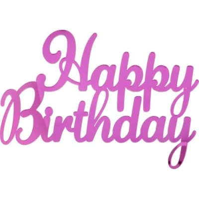 Glittering mirror plexiglass side topper with the words "Happy Birthday", ideal for placing on the side of the cake for birthday Fuchsia mirrored plexiglass Size: 7 x 16 cm Total height: 12 cm Ideal for decorating your cake The lettering is supported by two extensions that ensure easy attachment., Manufacturer: Graziano