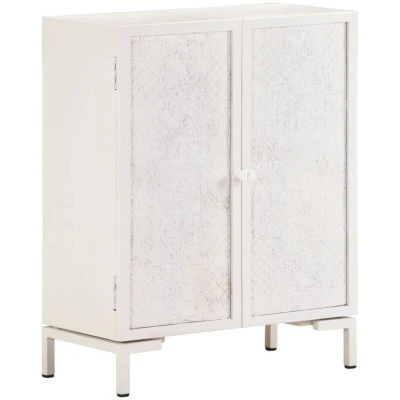 General description If you're looking for a simple touch of rustic and industrial charm to add to your interior decor, this wooden sideboard will do the trick. Made of solid mango wood, a tropical hardwood known for its strength and durability, this side cabinet is designed to withstand the wear and tear of time. The powder-coated iron frame adds extra stability, while the cupboard features 2 doors that provide ample storage space. The sturdy wooden top is perfect for displaying decorative objects such as photo frames, potted plants, and vases. Please note that colors and grains may vary from piece to piece, making each item unique. Technical specifications Material: Solid mango wood, powder-coated iron Dimensions: 60 x 30 x 76 cm (W x D x H) Assembly required: Yes WARNING : To prevent overturning, this product must be used with the wall attachment device provided. Other information