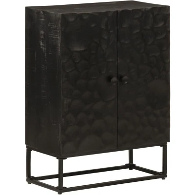 General description This wooden sideboard will make a practical and decorative addition to your home decor. Made from solid mango wood, it is a strong, tropical hardwood that ensures durability. The unique wood grains make each piece slightly different, adding character to your furniture. Technical specifications Colour: Black Material: Solid mango wood and iron Dimensions: 55 x 30 x 76 cm (L x W x H) Assembly required: Yes Usage Ample storage space to keep things organized and within easy reach. The stable top is perfect for displaying decorative items, picture frames, and potted plants. The sturdy iron legs enhance the stability of the sideboard. Other information Warning: To prevent it from tipping over, this product must be used with the provided wall attachment device. More details about preventing your furniture from tipping over can be found here .