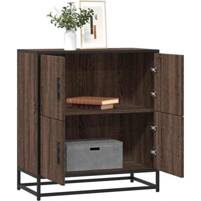 ManoManoGeneral description This modern sideboard, featuring a timeless look, is an excellent addition to your home. It combines functionality with style, making it suitable for various living spaces. Technical specifications Colour: Brown oak Material: Engineered wood, metal Dimensions: 68 x 35 x 76 cm (W x D x H) Maximum weight capacity (total): 60 kg Assembly required: Yes Usage This side cabinet can be used as a bathroom cabinet, kitchen cupboard, or elegant storage solution in bedrooms, powder rooms, entryways, corridors, offices, dining rooms, and other living areas. Other information Warning: To prevent it from tipping over, this product must be used with the provided wall attachment device. SKU: 848993