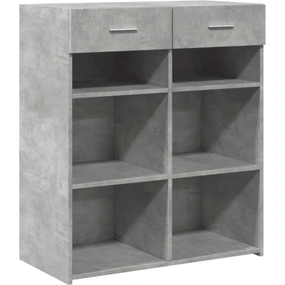General description This classic sideboard is designed to be a decorative and practical addition to your home. It features a sleek concrete grey finish and is made from high-quality engineered wood, ensuring durability and stability. Technical specifications Colour: Concrete grey Material: Engineered wood Dimensions: 80 x 42.5 x 93 cm (W x D x H) Assembly required: Yes Usage Ample storage space: The sideboard cabinet includes 2 drawers, providing sufficient space for organizing various daily essentials. Easy to clean: The surface can be easily maintained with a damp cloth. Other information Warning: To prevent tipping, this product must be used with the provided wall attachment device.