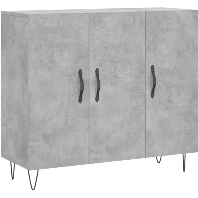 ManoManoGeneral description This modern sideboard, featuring a timeless look, is an excellent addition to your home. It offers ample storage space for keeping your daily essentials organized and within easy reach. Technical specifications Colour: Concrete grey Material: Engineered wood, metal Overall dimensions: 90 x 34 x 80 cm (L x W x H) Assembly required: Yes Installation To prevent it from being overturned, this product must be used with the provided wall attachment device. Usage The top of the cupboard is perfect for displaying decorative items, picture frames, and potted plants. Practical doors keep your essentials free from dust while the handles make it easy to open the storage cabinet. Other information