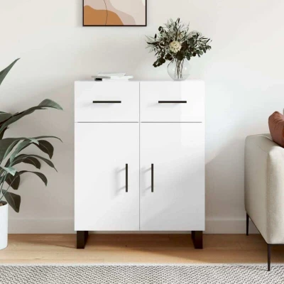 ManoManoGeneral description This modern sideboard, featuring a timeless look, is an excellent addition to your home. It offers ample storage space for keeping your daily essentials organized and within easy reach. Technical specifications Colour: High gloss white Material: Engineered wood, metal Overall dimensions: 69.5 x 34 x 90 cm (L x W x H) Assembly required: Yes Installation To prevent it from being overturned, this product must be used with the provided wall attachment device. Usage The top of the cupboard is perfect for displaying decorative items, picture frames, and potted plants. Practical doors keep your essentials free from dust while the handles make it easy to open the storage cabinet. Other information