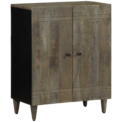 ManoManoGeneral description This sideboard offers both decorative appeal and practical storage, making it a perfect addition to your home. Crafted from solid mango wood, this robust tropical hardwood is highly favored for its exceptional durability and strength. Its beautiful wood grains ensure that each piece is unique. Technical specifications Colour: Light grey Material: Mango wood with light grey finish, engineered wood, metal Dimensions: 60 x 33.5 x 75 cm (W x D x H) Leg height: 10 cm Assembly required: Yes Usage Ample storage space for dining essentials and other household items Can be used as a bathroom cabinet, kitchen cupboard, or elegant storage cabinet in various rooms such as bedrooms, powder rooms, entryways, corridors, offices, and dining rooms Other information Each item is unique with variations in colours and grains To prevent tipping, this product must be used with the provided wall attachment device Images: