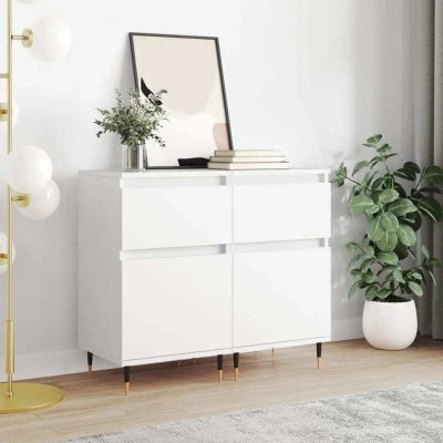 ManoManoGeneral description These trendy sideboards, featuring a timeless look, are an excellent addition to your home. Made from high-quality engineered wood, they offer durability and a smooth surface, making them easy to clean and maintain. Technical specifications Colour: White Material: Engineered wood, iron Dimensions: 40 x 35 x 70 cm (W x D x H) Assembly required: Yes Delivery contains: 2 x Sideboard Usage Ample storage space for organizing daily essentials. Top surface ideal for displaying decorative items, picture frames, and potted plants. Other information Warning: To prevent it from being overturned, this product must be used with the provided wall attachment device.