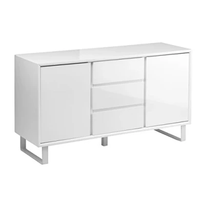 AmazonThe contemporary sideboard features white high gloss finish that will complement most decors Three central drawers and two cupboards will provide ample storage space The legs ensure the sideboard is sturdy and strong Care instructions: Wipe clean with damp cloth Height 80 x Width 145 x Depth 45 cm