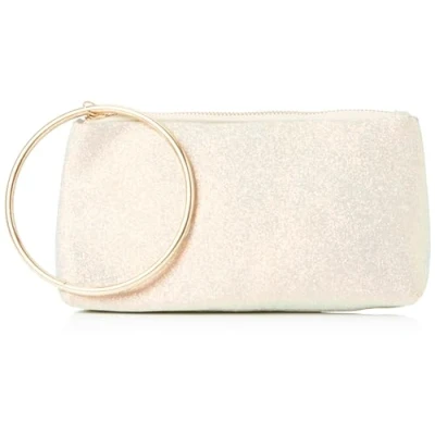 Glittery evening bag Rectangular design Large ring as a handle Textile inner lining Interior with zip