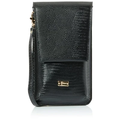 Mobile phone case made of imitation leather Reptile embossed Flap with magnetic closure Small card pocket on the back Removable and adjustable shoulder strap