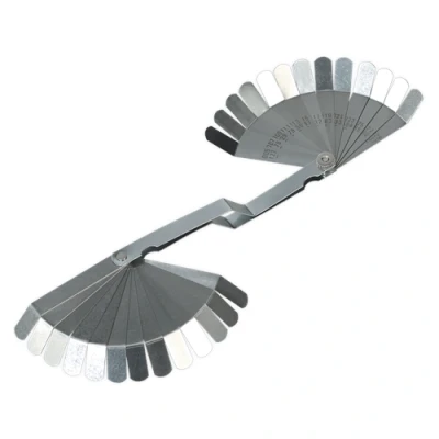 ManoManoGeneral description Sealey Siegen Dual Marked Offset Feeler Gauge features a 26 blade design that is graduated in both Imperial and Metric measurements. The offset tips are specifically designed for checking tolerances on OHC configurations and are suitable for applications where straight blades cannot be used. Technical specifications Blade sizes: 0.005" to 0.030" (0.127 to 0.762mm) Blade dimensions: 100 x 12.7mm (45º-25mm offset) Model No.: S0515 EAN: 5024209689106 Other information