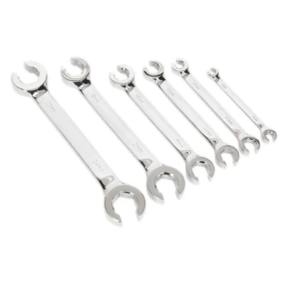 Sealey Siegen Flare Nut Spanner Set 6pc Features: Drop-forged steel spanners with contoured shafts. Fully hardened, tempered and chrome plated for resistance to corrosion. Flare type jaw suitable for most common sizes of compression joint fittings. Six double end spanners cover 12 sizes. Supplied in storage/hanging pouch. Technical Details: • Drop-forged steel spanners with contoured shafts. • Fully hardened, tempered and chrome plated for resistance to corrosion. • Flare type jaw suitable for most common sizes of compression joint. • Sizes: 6 x 8, 10 x 12, 13 x 14, 15 x 17, 19 x 21, 22 x 24mm. • Supplied in storage/hanging pouch. • Lifetime guarantee*. • Model No. S0767 • Model No. S0767 Additional Information: • Part of the Siegen by Sealey range of quality tools at competitive prices. • Drop-forged steel spanners with contoured shafts. • Fully hardened, tempered and chrome plated for resistance to corrosion. • Flare type jaw suitable for most common sizes of compression joint