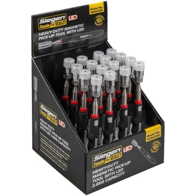 Siegen Heavy Duty Magnetic Pick Up Tool with LED 3.6kg Capacity Display Box of 16