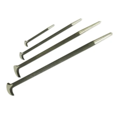 ManoManoGeneral description Drop-forged, heat treated steel shafts with a blackened finish. The tapered shaft is suitable for lining up components prior to assembly, while the heel design maximizes leverage. This set is also useful for fine positioning of heavy machinery and is part of the Siegen by Sealey range of quality tools at competitive prices. Technical specifications Contents: Heel Bars of 150mm, 300mm, 410mm, and 510mm Manufacturer Part Number (MPN): S0640 EAN: 5024209822299 Other information