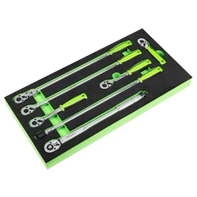 SIEGEN BY SEALEY - Part of the Siegen by Sealey range of quality tools. LONG LIFE - Chrome Vanadium steel 72-tooth ratchet wrench set, hardened and tempered with a fully polished mirror finish. REVERSIBLE RATCHET - Features pear-head with flip reverse, push-button quick release and anti-slip comfort grip. MICROMETER TORQUE RANGE ADJUSTMENT – Easily adjust torque, with range of 14-81.1lb.ft/19-110Nm. CONTENTS - Regular Ratchet Wrench, Offset Ratchet Wrench, Stubby Ratchet Wrench, 457mm Extra-Long Ratchet Wrench, 457mm Extra-Long Flexi-Head Ratchet Wrench, 457mm Breaker bar, 370mm Torque Wrench. STORAGE SOLUTION - Supplied in an EVA foam tray for secure storage and easy tool identification. LIFETIME GUARANTEE. Note: These tools are manufactured in accordance with DIN standards and are designed for improved access rather than excessive torque. Misuse will invalidate guarantee. Knuckle joints are not covered by the guarantee., Manufacturer: Sealey