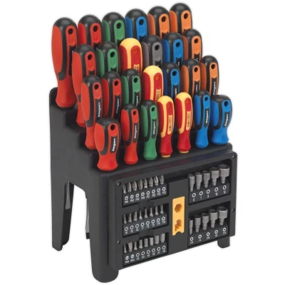 The Sealey Siegen Screwdriver, Bit & Nut Driver Set is an extensive and versatile collection designed to meet the demands of both professional tradespeople and DIY enthusiasts. This comprehensive 61-piece set features a wide selection of tools, ensuring you have the right screwdriver, nut driver, and bits for any task.